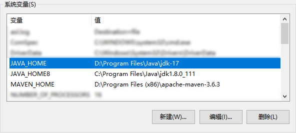 由于java17与java1.8的安装方式不同,这里的设置并没有影响到命令行,命令行拿到的java版本是17,因此需要将JAVA_HOME的值改为java17,就可以让maven拿到的java17