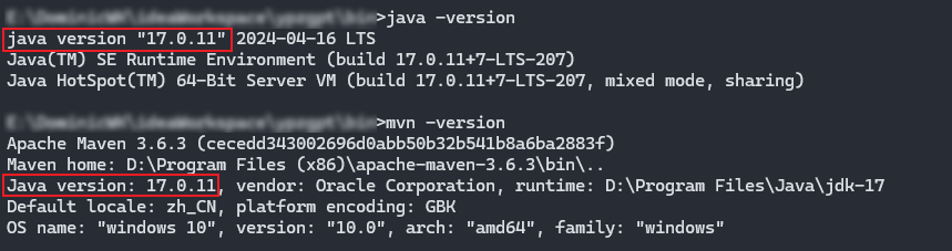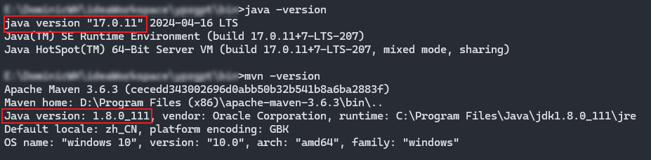 可以发现mvn识别到的java版本与实际使用的版本不一致,这是由于电脑中存在两个版本,而环境变量的设置没有做好。