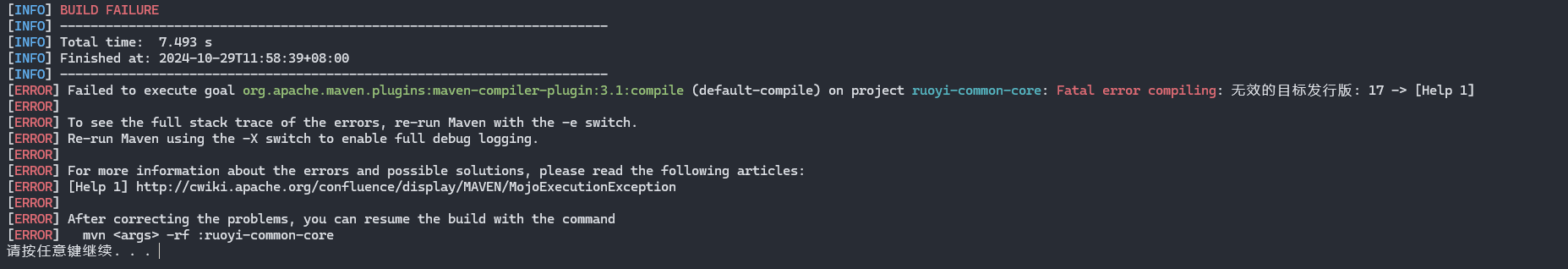 Ruoyi分离版后端打包Error:Fatal error compiling: 无效的目标发行版: 17 -> [Help 1]